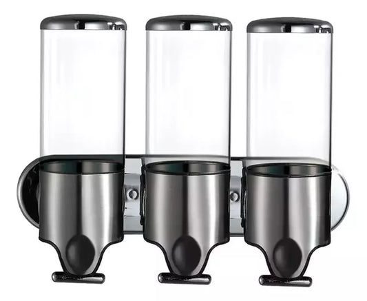 Dispensador Triple de Jabón y Shampoo para Pared, Organizador de Baño con Visor Transparente