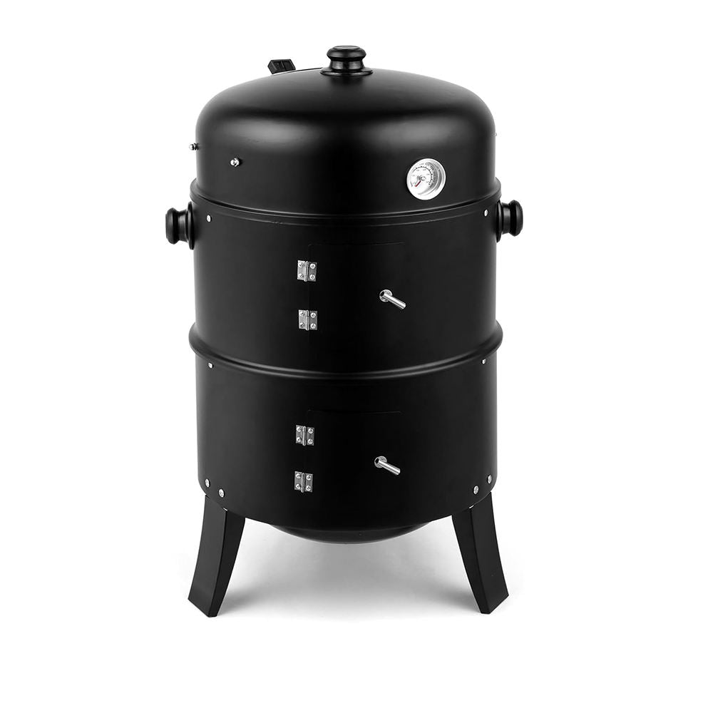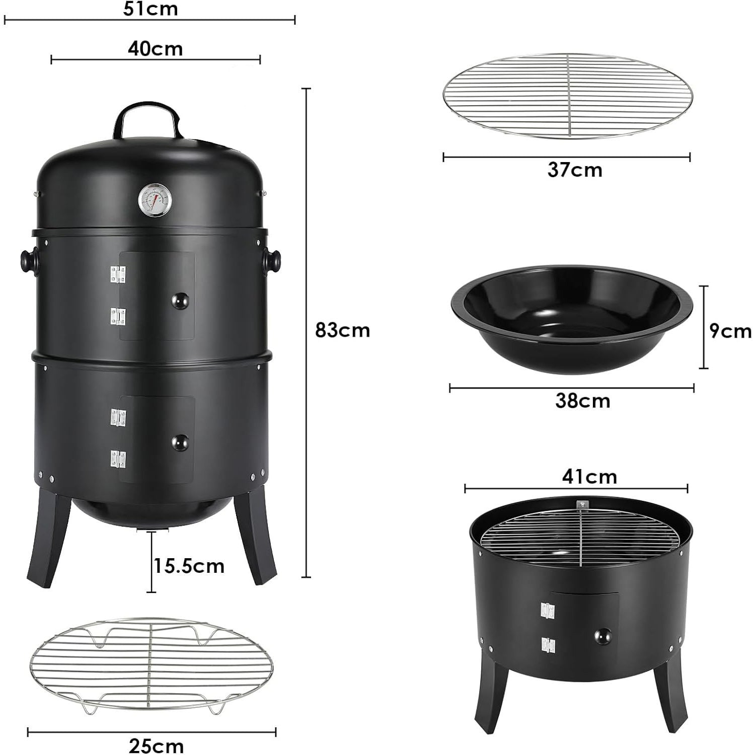 Barril Ahumador Multifuncional 3 en 1 con Termómetro y Doble Compartimento, Barril Ahumador de Metal Resistente para Terrazas y Patios